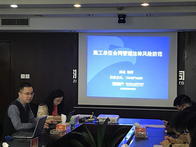 本次培训围绕合同的原理、建设工程合同的法律效力、建筑业营改增后签订合同的注意事项、施工单位如何搞好合同管理等四大部分展开。授课中,周律师结合自己丰富的办案经验,以平实的语言以及详实的案例,深入浅出地讲解了施工单位合同管理中的法律风险。