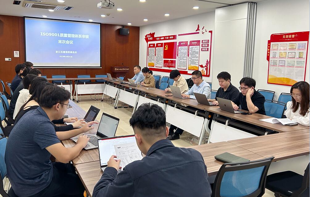最后,本所管理者代表姒慧娟律师表示,对审核组提出的改进机会,将在仔细研究、论证的基础上,加以有效改进。东鹰所将严格按照质量管理体系要求落实质量职责,强化和提高质量意识,不断满足客户需求,力求做到精益求精,践行律所之责任。