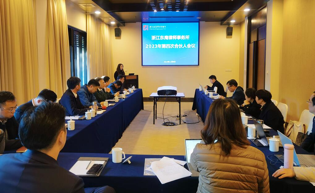 12月8日下午,浙江东鹰律师事务所2023年第四次合伙人会议在杭州良渚君澜大酒店召开。会议邀请了永续咨询公司合伙人讲解ESG理念及企业应用场景。事务所合伙人讨论通过了本年度晋升二级合伙人人选,审议通过了事务所第二届所务委员会委员提名名单,听取了所务委员会关于本年度前三次合伙人会议决定事宜的落实情况,最后围绕创新文化与事务所可持续发展展开讨论。