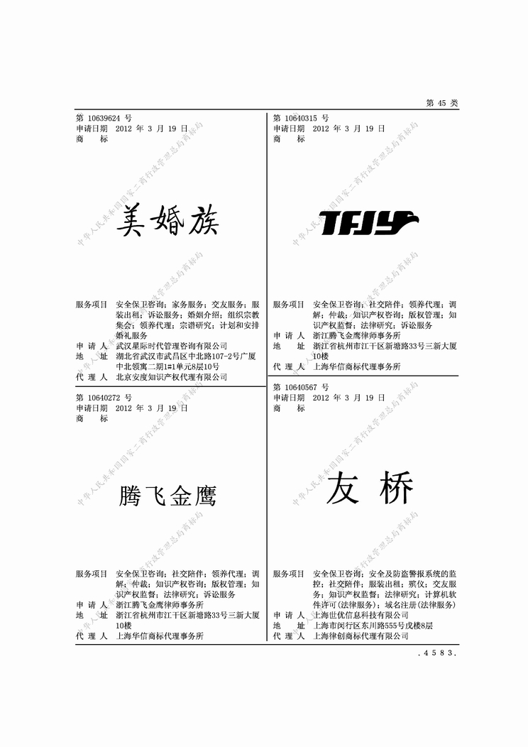 本所正式通过事务所LOGO及腾飞金鹰字样商标注册